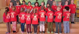 Was war das für eine gelungene Überraschung; die Dino-Kinder haben allesamt neue T-Shirts mit unserem KiTa „Am Kurpark“-Logo bekommen. Nun können wir chic angezogen auf Reisen gehen und sind bei Veranstaltungen inner- und außerhalb unserer KiTa sehr gut erkennbar.
