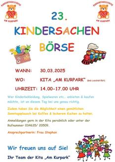 schon seit vielen Jahren begehen wir in unserer KiTa zweimal jährlich eine Kindersachenbörse wozu wir Sie an dieser Stelle sehr herzlich einladen möchten.