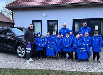 Übergabe der neuen Winterjacken an das Team der F3-Junioren