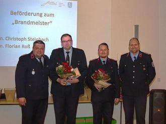 Die Kameraden Christoph Steinbach und Florian Roß wurden zum Brandmeister befördert