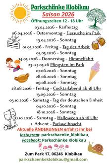 Mit dem Beginn der neuen Saison lädt die Parkschänke Klobikau wieder zu zahlreichen Veranstaltungen in den idyllischen Park ein. Einen fröhlichen Auftakt bildet in diesem Jahr die Ostereiersuche am Ostermontag, bei der vor allem die kleinen Gäste auf ihre Kosten kommen. Der Veranstaltungskalender bietet zudem einen ersten Ausblick auf viele weitere Termine, die 2026 im Park geplant sind. Weitere Informationen finden sich auf den aktuellen Flyern und über die Social-Media-Kanäle der Parkschänke.