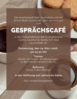 Zum Gesprächscafé im März laden die Goethestadt Bad Lauchstädt und die Evangelische Kirche herzlich ein – diesmal zu einem Nachmittag voller inspirierender Geschichten über den Osten Deutschlands.