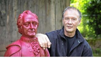 Künstler Ottmar Hörl mit seiner Goethe-Skulptur