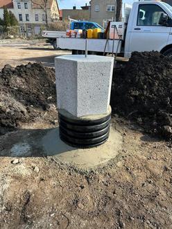 Der Sockel für die Goethe-Skulptur wird errichtet