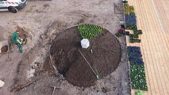 Das Rondell des Städtegartens wird angelegt