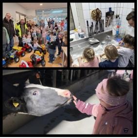 Die Regenbogenschäfchen besichtigten am 13. März 2024 die Milchmelkanlage der Agrarprodukte e.G. Schafstädt. Eine freundliche Mitarbeiterin führte uns durch das Gelände. Sie beantwortete die vielen Fragen der Kinder und gab einen Einblick in die Arbeit mit den Milchkühen. Wir betrachteten die niedlichen Kälbchen und konnten sogar ein frisch Geborenes bestaunen. Wer mutig war, durfte eine Kuh streicheln. Wir sahen den Kühen beim Fressen zu und waren sehr erstaunt, wie selbständig sie zur Melkanlage laufen. Beim Melken zusehen, war für uns sehr interessant. Am Ende des spannenden Tages gab es noch ein „Leckermäulchen“ zum Naschen und für alle Wolkenschäfchen eins mit in die Kita. Alle Kinder bedanken sich recht herzlich für die Zeit und den informativen Tag im Unternehmen.
