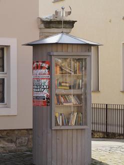 Die Litfaßsäule mit Bücherregal am Markt in Bad Lauchstädt