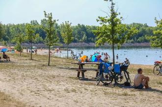 Zur langfristigen Sicherung des Böschungsbereiches gegen Erosion der Uferlinie und der Nutzung des Badebereiches werden aktuell neun Buhnenreihen im Uferbereich eingebaut.