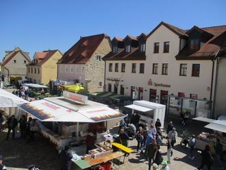 Gegen 1:00 Uhr morgens verließen die letzten Gäste den Markt. Bereits gegen 6:30 Uhr trafen dann bereits die ersten Händler für den Lauchstädter Frühlingsmarkt ein. Über 45 Händler so viele wie nie zuvor - hatten sich in diesem Jahr für den Frühlingsmarkt angemeldet und boten bei strahlendem Sonnenschein ihr umfangreiches Warensortiment an. Gegen 10:00 Uhr konnten der Bürgermeister und der Lauchstädter Ortsbürgermeister die Gäste begrüßen.
