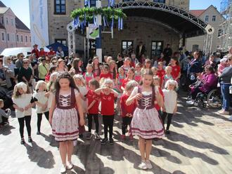 Auf der Bühne des Frühlingsmarktes ging es mit den Programmen der Lauchstädter Kindertagesstätten Sonnenblick und Am Kurpark weiter. Die Kinder begrüßten den Frühling mit Mitmachliedern und tollen Gedichten. Mit niedlichen selbst gestalteten Kostümen erfreuten sie die vielen Zuschauer an der Bühne. Um 15.00 Uhr zeigten über 50 Kinder der Tanzgruppe des Sportvereins Großgräfendorf Ihr hervorragendes Können. Die Beatminis, Beatkids und Beatteens zeigten zahlreiche hervorragend einstudierte Tänze.