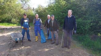 Helfer von der Beräumung von Müll auf dem Gelände des Kirschberges