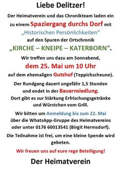 5. Terminhinweise des Heimatvereins Delitz am Berge e.V.