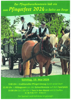 Der Pfingstburschenverein lädt zum traditionellen Pfingstumzug und zum Pfingstfest 2024 ins Festzelt auf dem Sportplatz ein.