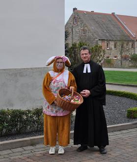 In diesem Jahr waren es nicht unsere kleinen Gäste, die den Osterhasen Conny zuerst entdeckten. Unser Pfarrer Herr Börner, der gemeinsam mit der Kirchengemeinde zum Gottesdienst in den Milzauer Pferdestall eingeladen hatte, staunte nicht schlecht, wer sich da auf den Weg zum Festgelände machte.