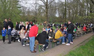 Mit allerlei Süßigkeiten, bunten Eiern aber auch kleinen Büchern besuchte uns der Osterhase in diesem Jahr wieder zum Osterfeuer am Gründonnerstag an den Schlossteichen. Pünktlich um 17:00 Uhr füllten sich die Wege und wir durften zahlreiche Gäste willkommen heißen.