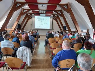 Grundstückseigentümer verfolgen die Ausführungen anlässlich der Teilnehmerversammlung
