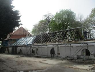 Rückbau der Dachkonstruktion am Arkadengebäude