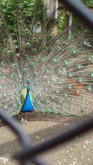 Ein Pfau schlägt seine Augenfedern zum Rad