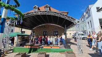 Im Hintergrund warteten bereits sehr ungeduldig die Kinder der Lauchstädter Kindertagesstätten „Am Kurpark“ und „Sonnenblick“ auf ihren Auftritt. Auch der „Hort der Freizeitgeister“ präsentierte sich den zahlreichen Marktbesuchern mit Liedern und Gedichten auf der Bühne.