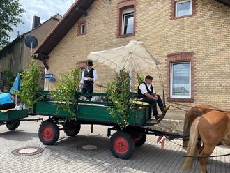 Am Pfingstsonntag, den 19. Mai zogen die Pfingstburschen von 9:00 14:00 Uhr traditionell mit Kutsche, Musik und guter Laune durchs Dorf und überbrachten namentlich einen schönen Pfingstgruß in jedes Haus. Dazu gehörte natürlich auch ein kleiner Umtrunk der die Stimmung noch steigerte.