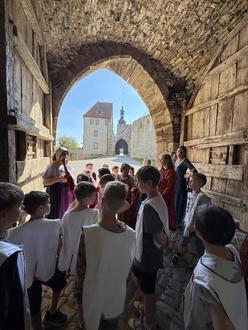 Am 2. Mai 2025 war ein Brückentag und für viele dadurch ein langes Wochenende. Doch die angemeldeten Hortkinder mussten deshalb nicht traurig sein, denn es stand uns ein schöner Ausflug nach Querfurt zur Burg bevor, welchen unsere Leitung Frau Töpfer organisierte.