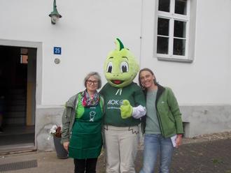 Frau Dembeck, Leiterin der Kita (l.), Jolinchen (m), Frau Kleist von der AOK (r.)