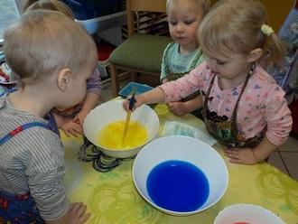 In unserer Kita haben die Kinder – im Alter von zwei bis drei Jahren - im Rahmen des Farbenprojektes die faszinierende Welt der Farben entdeckt. Unter dem Motto „Eine Reise ins Farbenland“ haben die Kinder verschiedene Farben mit allen Sinnen erfahren und auf spielerische Weise die Welt der Farben kennengelernt.