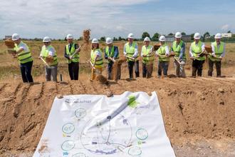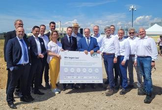 Vertreter aus Politik und Wirtschaft führen den ersten Spatenstich für den 30-MW-Großelektrolyseur durch