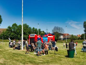 Blick zur Hüpfburg der Feuerwehr
