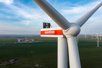 Blick über eines der neuerrichteten Windräder im Energiepark Bad Lauchstädt
