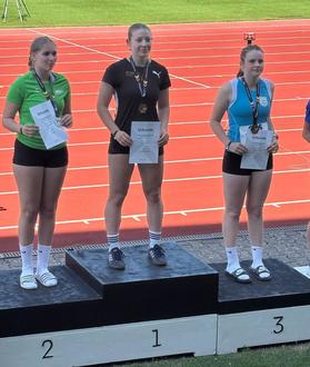 Josefine stolz bei den Deutsche Meisterschaften mit der Bronze Medaille im Hammerwurf