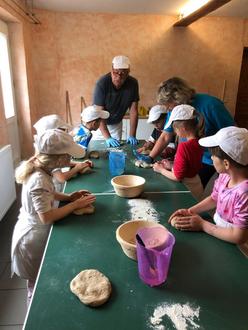 In zwei eingeteilten Gruppen galt es verschiedene Stationen zu erkunden. Als kleine Bäckermeister durften die Kinder so zum Beispiel ihr eigenes Brot herstellen und einen Teil davon zum Kosten mit nach Hause nehmen, Apfelsaft pressen und vor Ort verkosten, sowie Butter eigenmächtig schüttelnd erzeugen und sich anschließend auf ihrem Brot schmecken lassen.