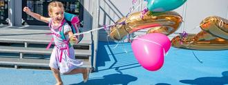 FOTO 19: - Erstklässlerin mit Luftballons auf dem Weg zur Schule