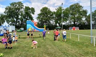 Am Nachmittag, zum Kinder- und Familientag gab es viele Angebote auf dem Klobikauer Sportplatz zum mitmachen oder zuhören. Während sich die Jüngsten auf der großen Rutsche, Hüpfburg, beim Kinderschminken, Laser-Gewehr-Schießen, beim Fußball-Darts oder beim Mit-Mach-Zirkus KUNTERBUNT auspowern konnten, gab es für die Erwachsenen im Festzelt Unterhaltungsmusik mit den Giebichensteiner Solisten. Den Schlusspunkt bildete eine Fahrt mit dem Klobikauer-Clownmobil und das beliebte Kinder-BINGO, wo es tolle Preise zu gewinnen gab.