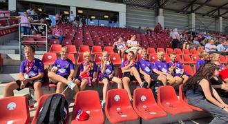 Die Kinder verfolgen das HFC-Spiel von der Tribüne aus
