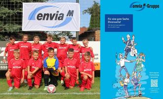 Die Fußballer der E1-Junioren in ihren neuen enviaM-Trikots