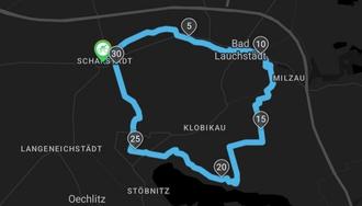 Vom Kurpark ging es weiter durch Kleinlauchstädt, Milzau und zum Weinberg „Goldener Steiger“ in Klobikau, der eine atemberaubende Aussicht auf den Geiseltalsee bot. Die eine Hälfte der Teilnehmenden verabschiedete sich hier wieder, für den Rest führte die Tour über den Müchelner Ortsteil Wünsch nach Schafstädt. Insgesamt legten die Radfahrenden rund 28 Kilometer zurück.
