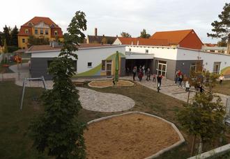 Blick über die Außenanlagen des Krippen-Bereiches