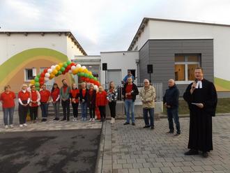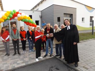 Durch Pfarrer Andreas Börner wurde der Segen für das Haus und die darin ein- und ausgehenden Personen ausgesprochen und dass die Kinder hier ein schöne, angebotsreiche und lehrhafte Kindergartenzeit verbringen können.
