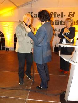 Nach der Blumenübergabe Herr Stanislaus Großstück und die Geiseltaler Weinprinzessin Lara Marie Werner