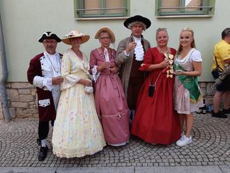 Eines dieser Bilder des Festumzuges wurde wieder durch die Goethestadt Bad Lauchstädt gestaltet. Angeführt vom Spielmannszug der Freiwilligen Feuerwehr folgte eine Laufgruppe mit historischen Persönlichkeiten der Lauchstädter Geschichte. Bürgermeister Christian Runkel präsentierte sich als Johann Wolfgang von Goethe. Auf einem historischen Fahrzeug vom Typ DK 2004 / M21 vom ehemaligen VEB Fahrzeugwerk Waltershausen in den Jahren 1956-1964 gebaut, im Volksmund auch „Ameise“ genannt, wurde ein Modell des Lauchstädter Goethe-Theaters mitgeführt.