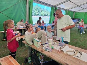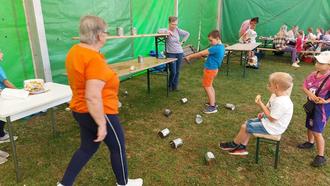 Am 20. September ist Weltkindertag. Der Sportverein und der Heimatverein hatten deshalb -einen Tag später- am Samstag zum Kinderfest auf den Delitzer Sportplatz eingeladen. Die Zumba-Kids brachten mit ihren Sport-/Tanzeinlagen gleich richtig Stimmung unter die zahlreichen kleinen und großen Besucher. Auf der Hüpfburg, beim Dosen werfen (immer ein Renner), Gummistiefelweitwurf und um die Wette hüpfen konnten die Kinder ihren Bewegungsdrang voll ausleben. Nicht so stürmisch ging es beim Malen, Basteln und Kinderschminken zu. Für ein tolles Outfit wurde bei letzterem auch mal eine längere Wartezeit in Kauf genommen. Gegen 13:00 Uhr öffnete sogar eine Plüschtiersprechstunde ihre Pforten. Die kranken Kuscheltiere wurden abgehört, mit Verbänden und Spritzen versorgt und mit unserem Tierarzt a. D. so manches Fachgespräch geführt. Etwas abseits vom großen Trubel in der Begegnungsstätte wurden den Kids spannenden Geschichten vorgelesen.