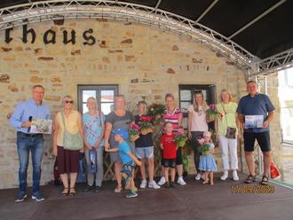 Gruppenfoto zum Herbstmarkt mit den geehrten Teilnehmern am Lauchstädter Blumenschmuckwettbewerb 2023