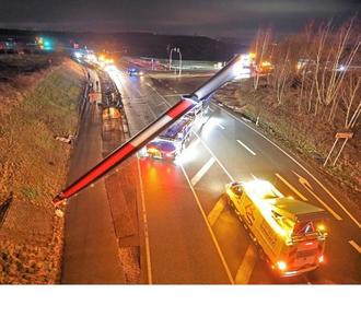 Der Transport der riesigen Rotorblätter ist eine enorme Herausforderung für die Spezialtransporte