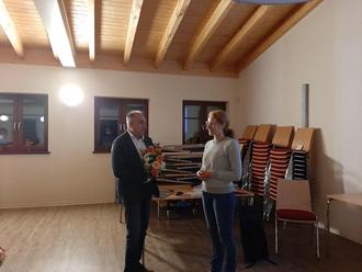 Vereinsvorsitzender Jörg Homann bedankt sich mit einem Blumenstrauß bei Frau Neumann für den interessanten Fachvortrag
