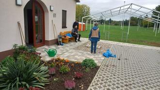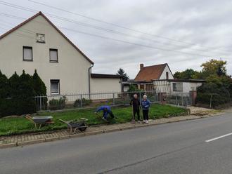 Das Beet an der Begegnungsstätte wird gesäubert und neu bepflanzt