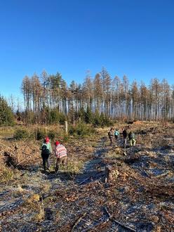Passend zum 1. Advent führte der Umweltstammtisch Sohland eine Pflanzaktion auf den Kammlagen des Tännicht durch. An einem Vormittag wurden insgesamt 150 Mehlbeeren, Elsbeeren und Wildäpfel in den Boden gebracht. Diese speziellen Baumarten sollen in Zukunft einen stabilen Waldrand entlang der Wege und Schneisen bilden. Die Pflanzen sind winterhart, sturm- und trockenresistent. Ihre späteren Kronen, Früchte und Blüten bieten Wild, Vögeln und Insekten ein reichhaltiges Nahrungsangebot und Unterschlupf. Hiermit wird dem, in unserer Kulturlandschaft voranschreitenden, Artenschwund wenigstens im Kleinen ein wenig entgegengewirkt. Bei traumhaftem Wetter arbeiteten 15 Engagierte von 3 bis 70 Jahren für einen zukunftsfähigen, stabilen und ökologisch wertvollen Wald. Zur Belohnung wurde noch warmer Früchtepunsch und Glühwein ausgeschenkt. Wer sich auch bei unseren Aktionen beteiligen möchte oder eigene Projektideen hat, kann sich jederzeit unter umweltinitiative-sohland@mailbox.org melden oder beim Umweltstammtisch vorbeikommen. Der Umweltstammtisch findet jeden 1. Montag im Monat um 19:00 Uhr im Brauhaus am See statt. Der nächste Stammtisch ist am 13.01.2025.