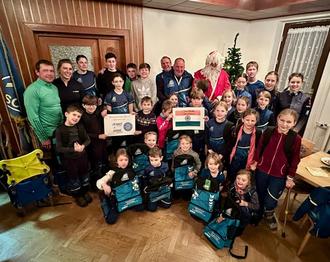 Lange Weile kam da nicht auf! Danach ging es mit selbstgesungenen Weihnachtsliedern, auch wenn die Textsicherheit nicht immer gegeben war, gen Sparkassen Skiareal nach Sohland. In der Schanzenbaude hatten unsere Vereinswichtel, vielen Dank an Euch, alles vorbereitet. Neben Tee, Plätzchen und Würstchen wurde spekuliert, ob auch der Weihnachtsmann bei uns vorbeischaut. Und dann, war es soweit - er kam! Dank Steffen Schirner konnte der Weihnachtsmann seinen Schlitten und Anhänger voll toller Rucksäcke mit Vereinslogo und in Vereinsfarben packen. Ob mit Lied, Gedicht, Liegestützen, Hockstrecksprüngen mussten die Sportler jeweils die gestellten Aufgaben des Weihnachtsmannes erfüllen. Zudem wurde durch Luisa mit der Geige und Elisabeth mit dem Tenorhorn zwei musikalische Highlights gesetzt, was die Sportfreunde, ob alt oder jung, in Staunen versetzte. Denn es waren neben den jungen Sportlern auch einige Vereinsmitglieder vor Ort, um die Zeit gemeinsam zu genießen.