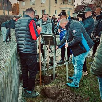 Der Verlierer der Wette, Moderator Mario, musste dann seine Wettschuld einlösen, und das Hinweisschild „Zippl Obersohland“ aufzustellen und zu betonieren. Große Hilfe bekam er von unserem Vorstandsmitglied Alf Rößler.