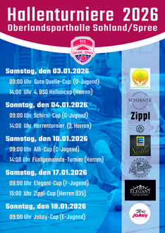 Im Januar 2026 finden wieder die traditionellen Hallenturniere der BSG Sohland-Oppach in der Oberland Sporthalle Sohland statt.